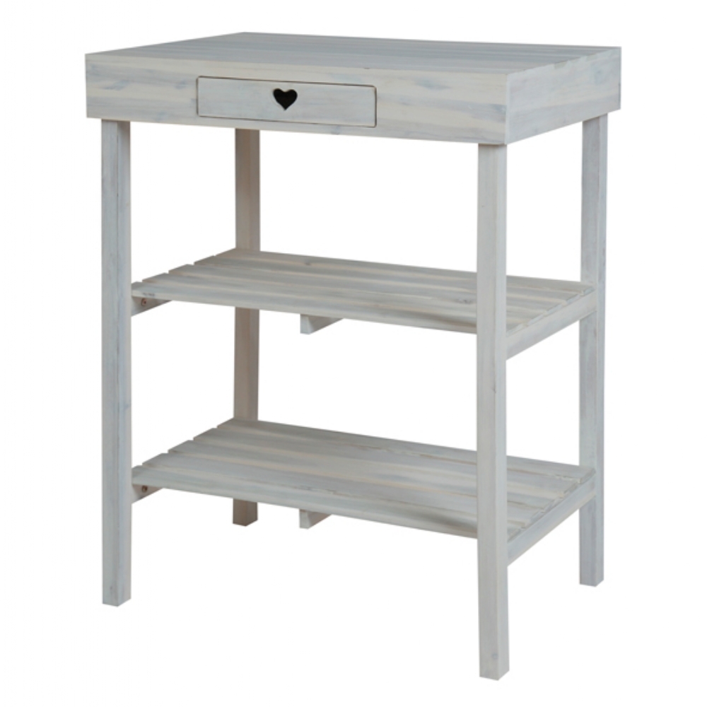 pb Oppottafel wit met lade 50x70xH90 acacia
