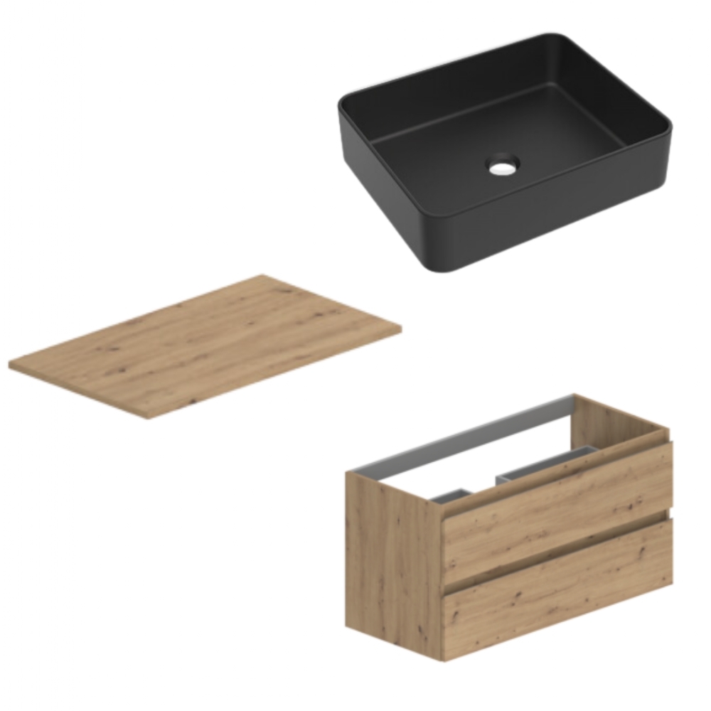 bm Atlantis 100 miel 2 tiroirs meuble sous-vasque noir mat