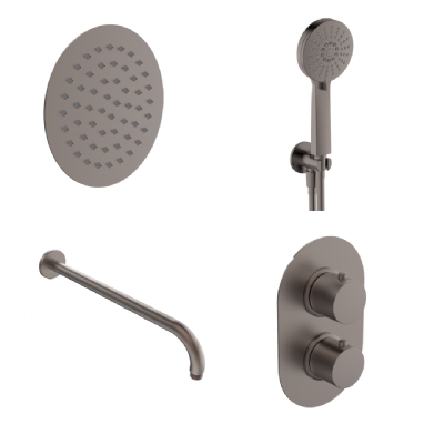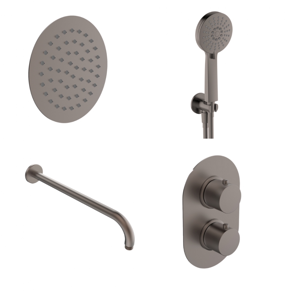 Rondo set de douche encastr therm. 2-voies mtal-fusil 20 cm