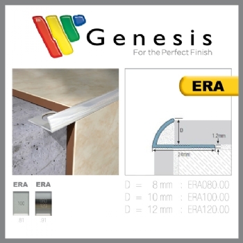 Genesis ERA aluminium profiel biedt een ronde afwerking, ontworpen om de rand van keramiek of soortgelijke harde oppervlakte te beschermen.